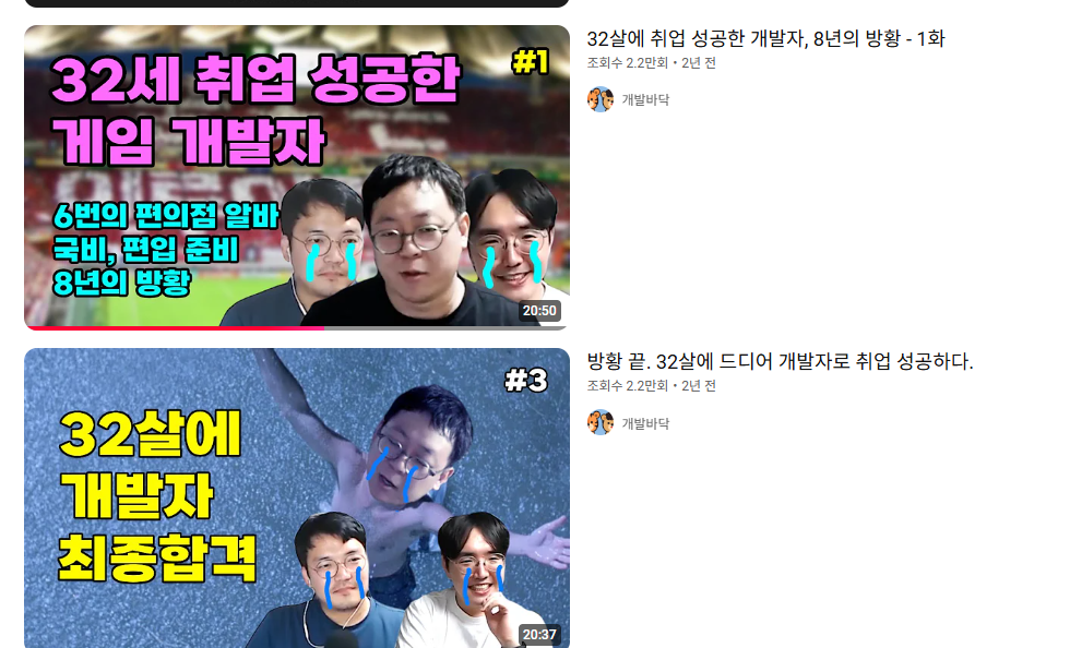 얼마 전, 유튜브의 개발바닥 채널에서 32살에 게임 개발자로 취업에 성공한 분의 이야기를 담은 시리즈 영상을 1편부터 3편까지 모두 보았다. 그 영상 속 주인공의 이야기를 들으며, 마치 내 자신의 과거와 현재를 그대로 보는 듯한 기분이 들었다. 국비지원 교육, 대학 편입 준비, 그리고 생계를 위해 아르바이트를 병행하며 하루하루를 버텨왔던 시간들. 그리고 문득 정신을 차리고 보니 나 또한 어느새 32살까지 한 달밖에 남지 않은 시점에 와 있었다.