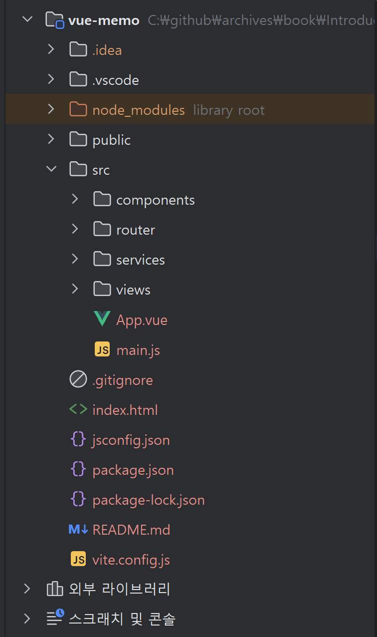 Vue.js는 자동으로 생성되는 폴더 및 파일이 있습니다. 이 중에서 애플리케이션을 실행하는 데 특히 중요한 역할을 하는 파일은 package.json, index.html, main.js, App.vue입니다.