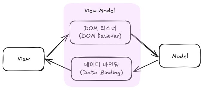 | ViewModel | Vue 인스턴스(new Vue({ ... })) 또는 컴포넌트 내부 로직 |