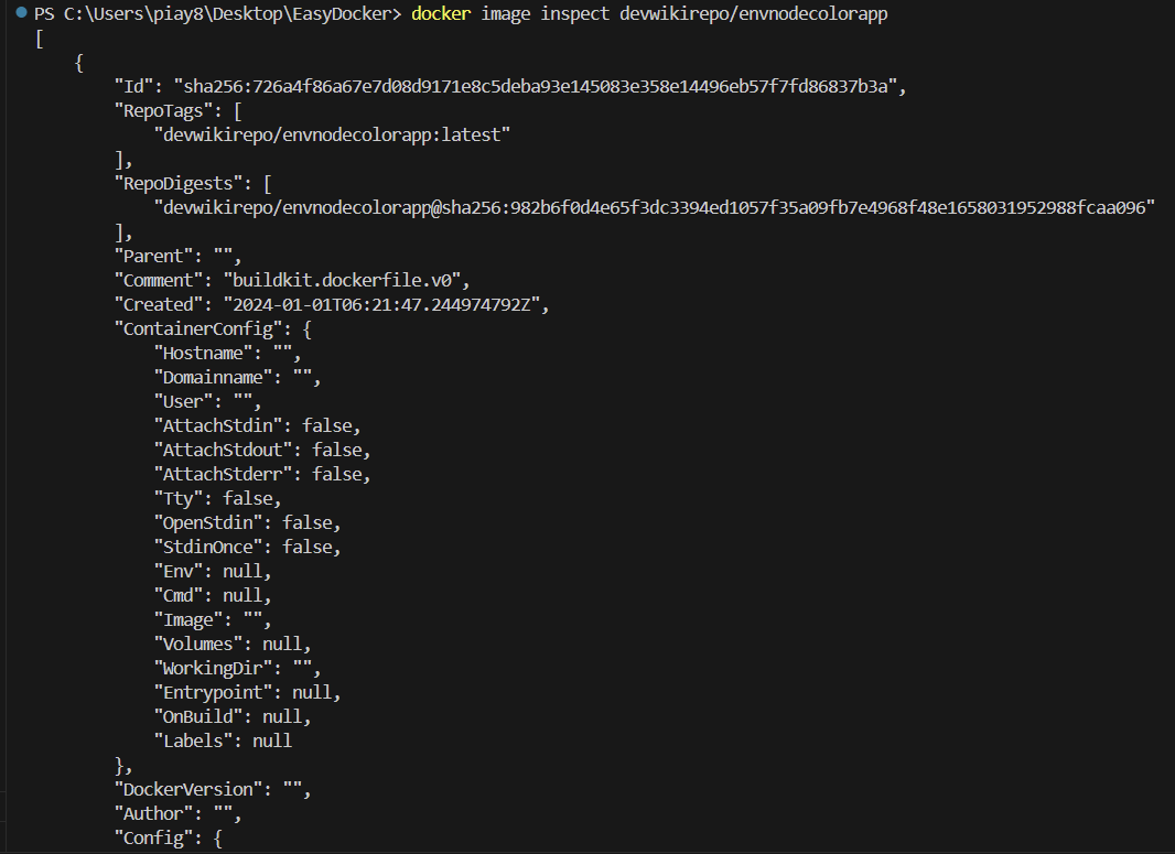 12. docker image insepect devwikirepo/envnodecolorapp