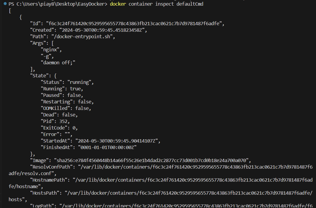 docker container inpsect defaultCmd