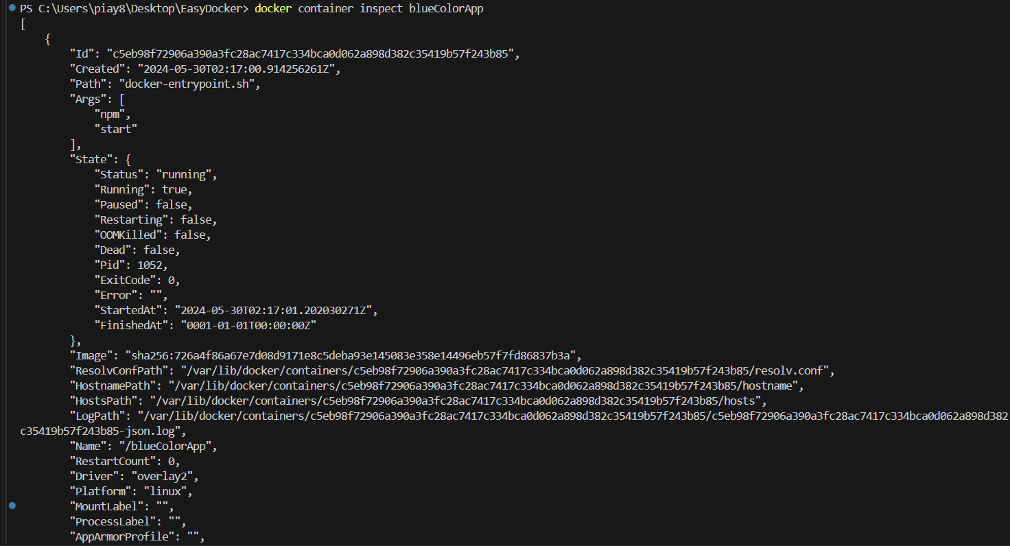 15. docker container inspect blueColorApp