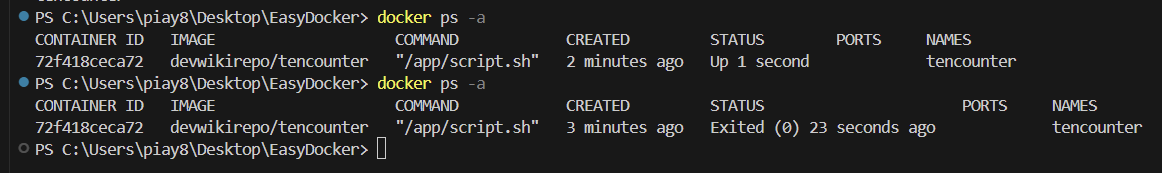 따라서 tencounter 컨테이너 내부에서 실행 중인 프로세스가 10초 뒤에 종료된 상태인 것이다.