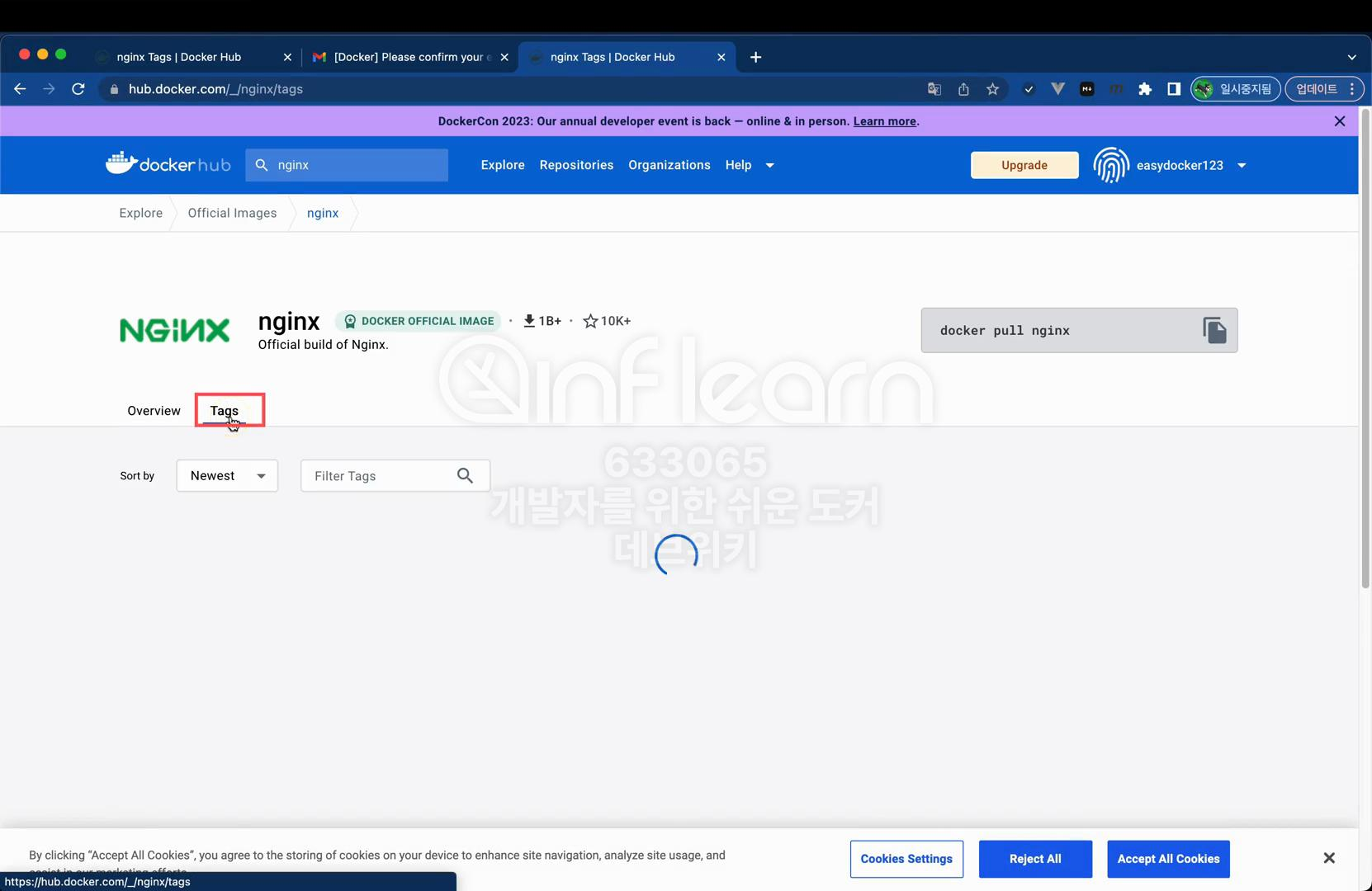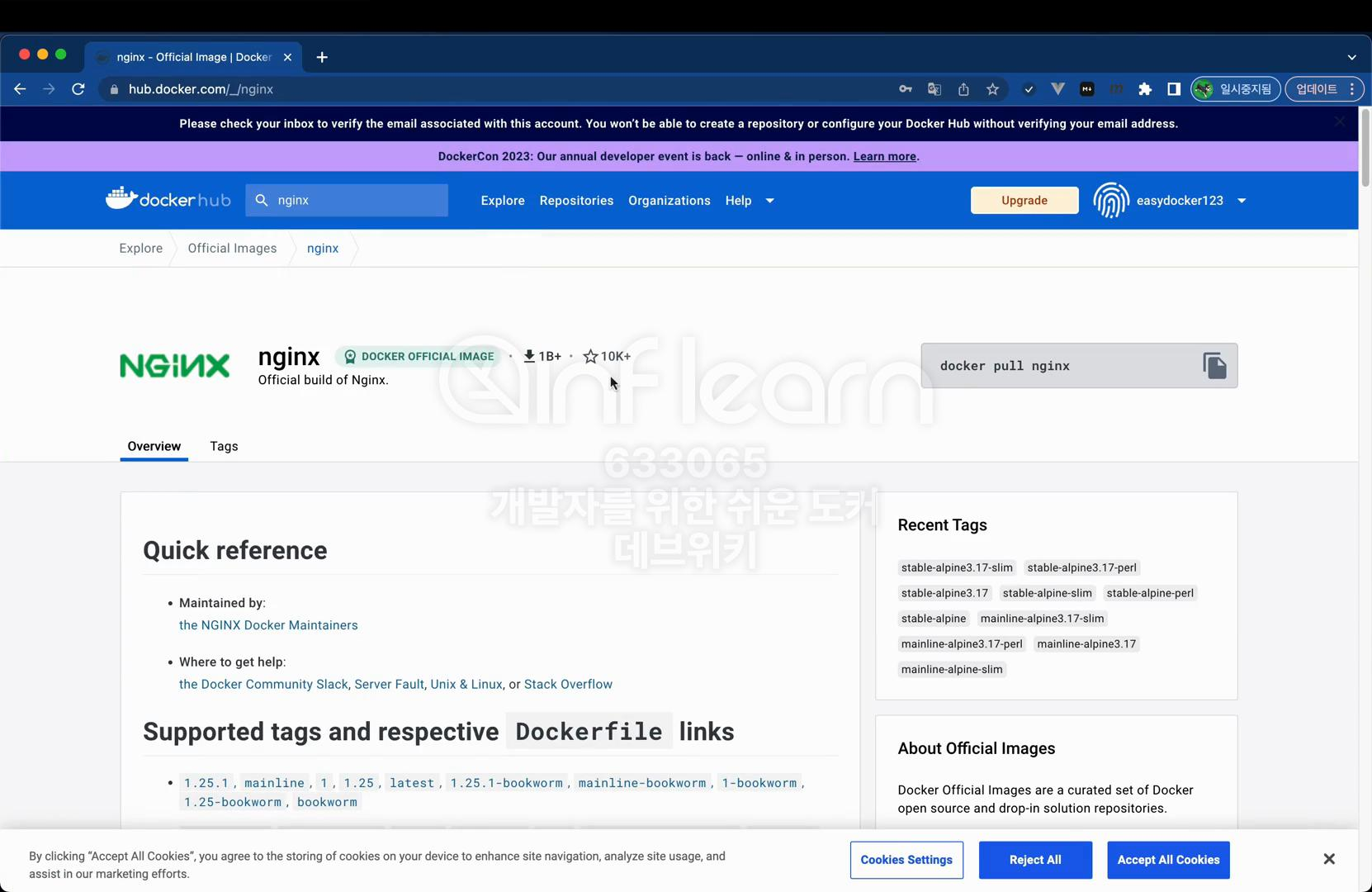 태그 탭을 클릭해 보면 Nginx 이미지의 버전 정보도 확인할 수 있다.