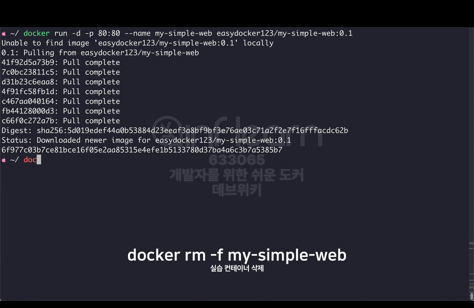 그럼 실습에 사용한 컨테이너를 삭제하고 실습을 마친다. docker-rm-f 의 my-simple-web으로 컨테이너를 삭제해준다.