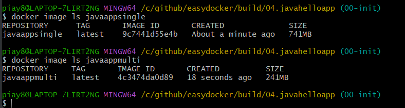 docker image ls javaappmulti