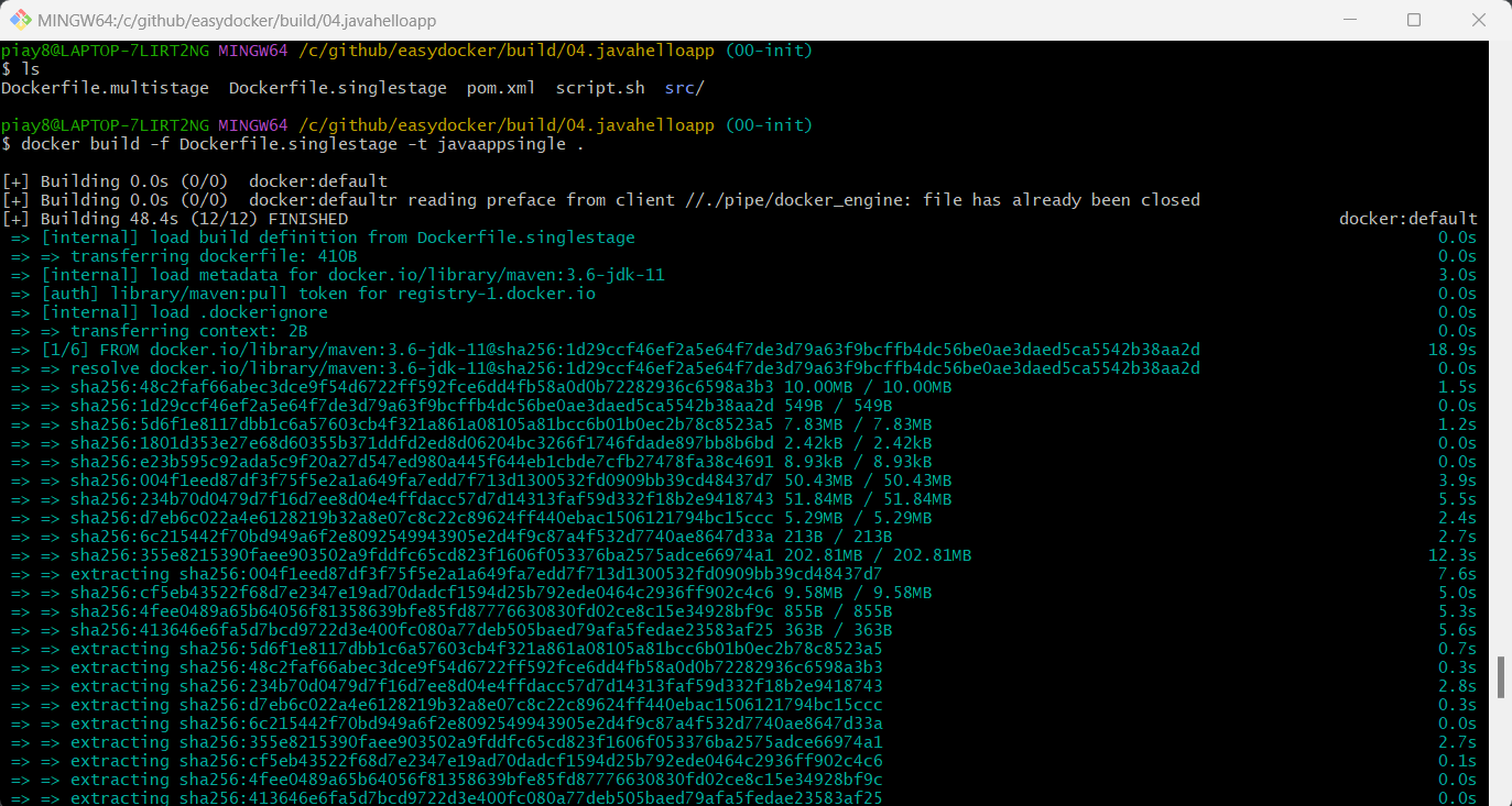 docker build -f Dockerfile.singlestage -t javaappsingle .