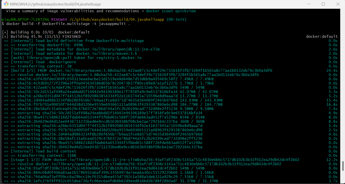 docker build -f Dockerfile.multisatge -t javaappmulti .